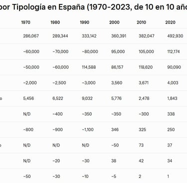 Aborto (IVE): 103.097 en 2023 (Sanidad). Pre-1990, ~50.000-60.000 (estimado por tendencias pre-ley 1985). No cuenta en "Total" (no es muerte según INE).